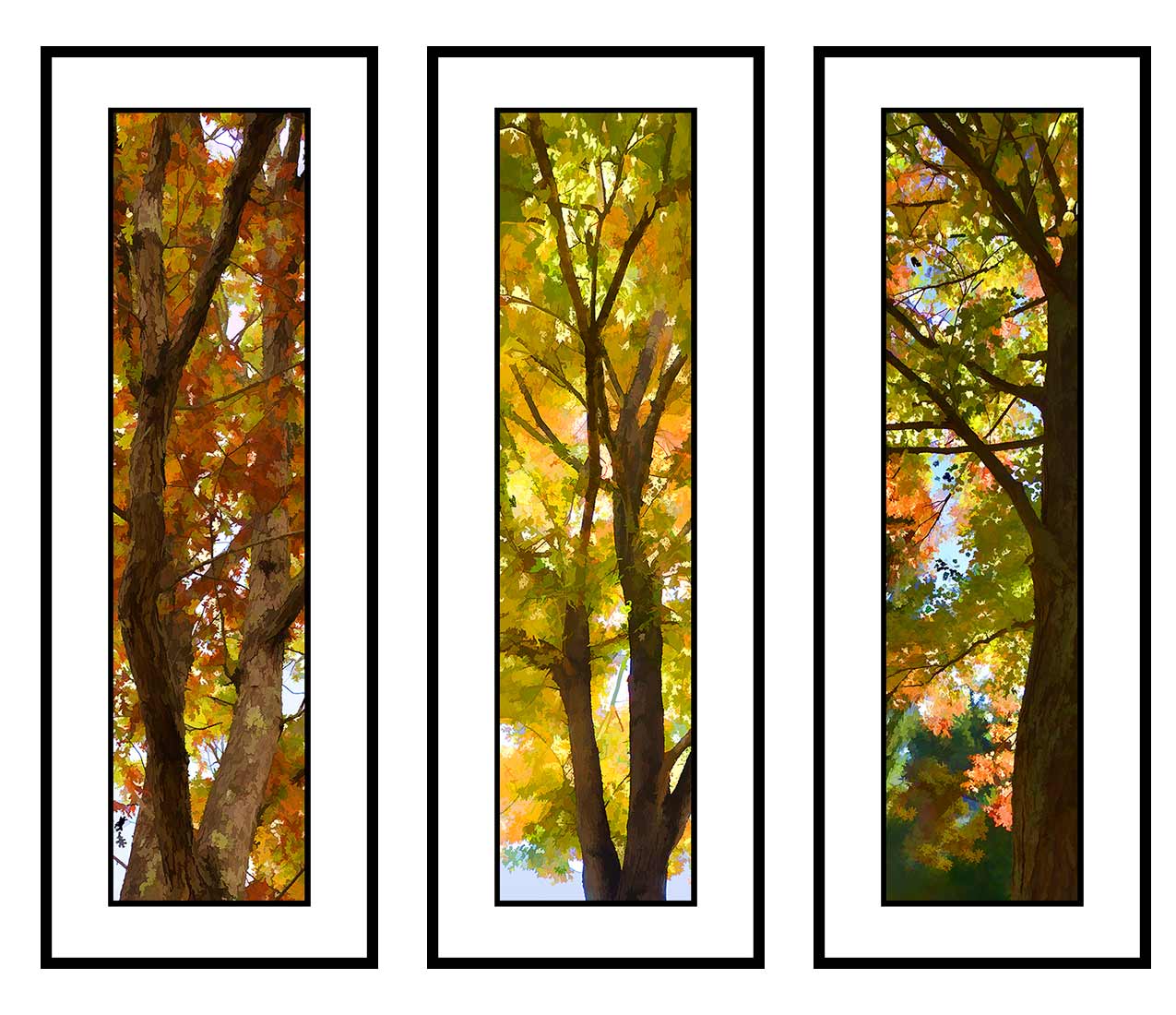 Climbing Tree, Season Change, and Fall Splash in a grouping of closeup trees in fall color.
