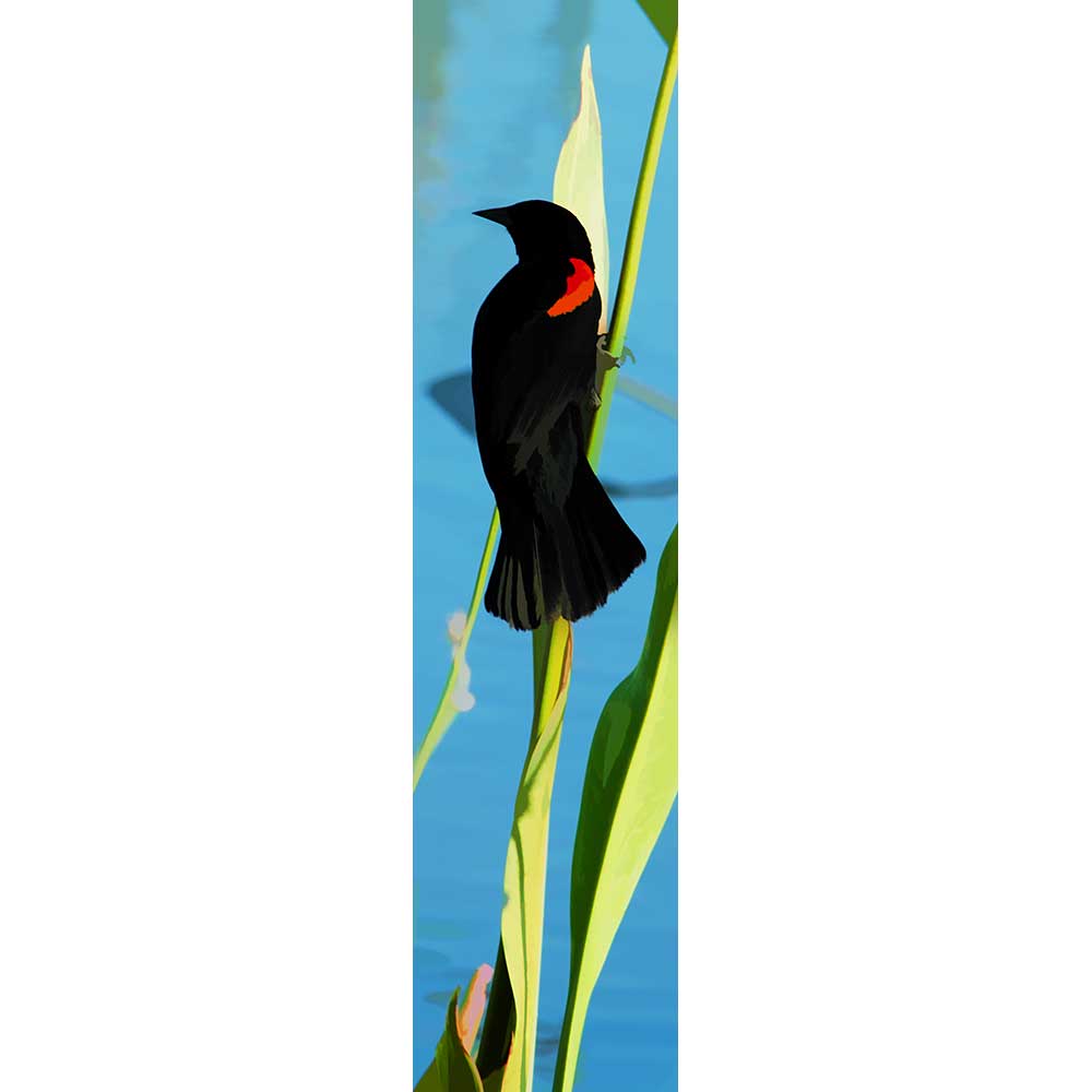 Sun Fire Tree, Sunlight on Grass, and Redwing on a Reed. Simple bright splashes of color.