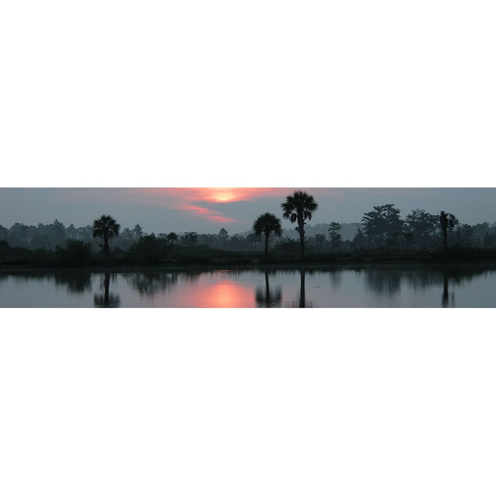 Sunrise across a lake in sunny Florida with vibrant pinks and blues.
