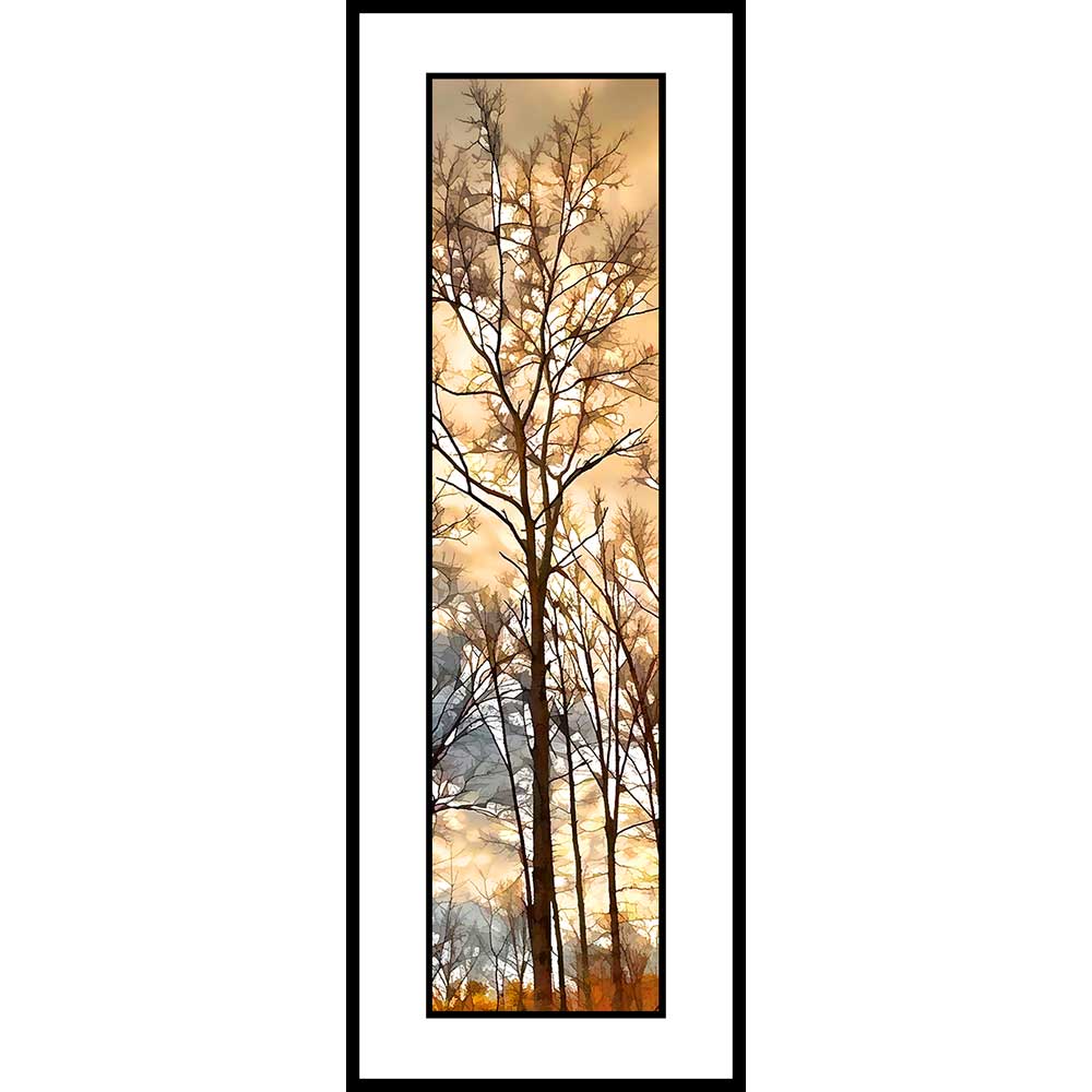 Framed pieces in both sizes are framed with UV resistant glass with double cotton rag mats white on black and an archival backing board in a classic black metal frame.