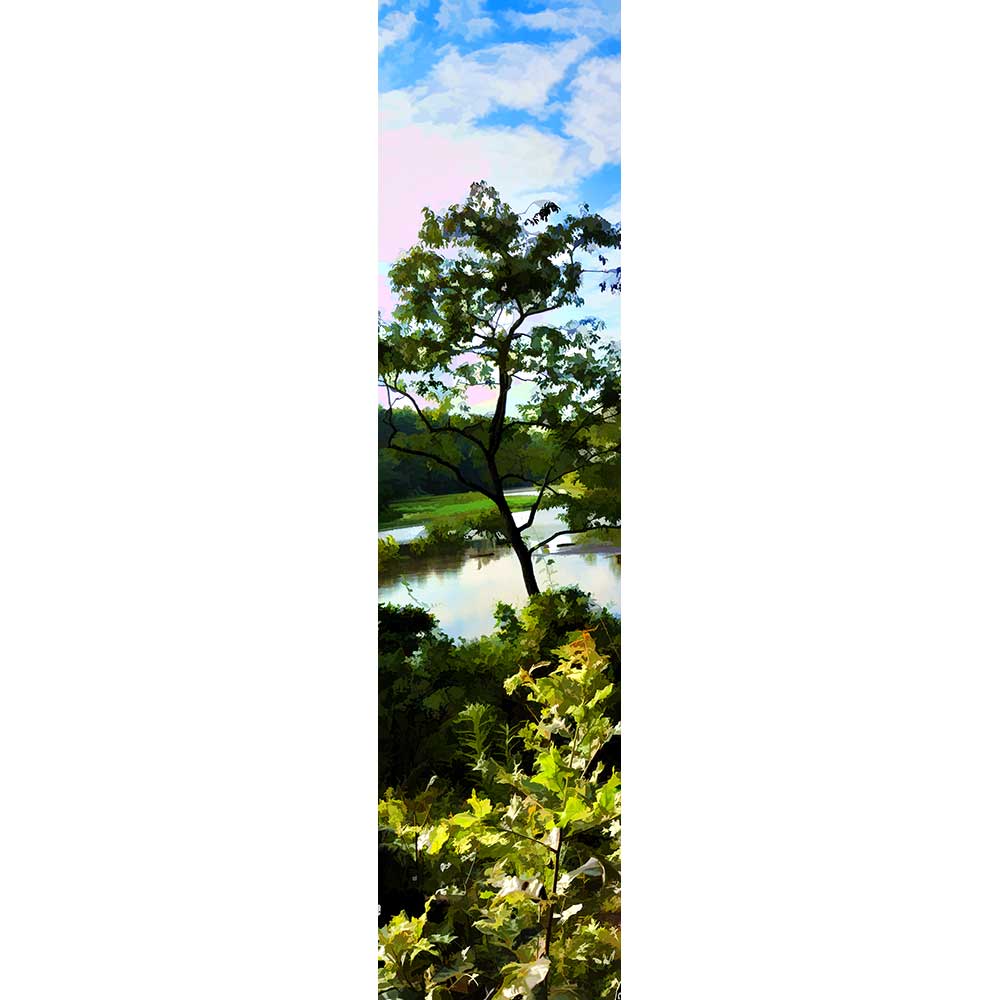A small tree by the river on a partly cloudy day.  I went on a hike at a local park.  Hoping to get some water images I took the trail that looked like it went right by the water.  It didn't go right by the water.  I could see the water but there was so much underbrush that this was the only image I was able to get.
