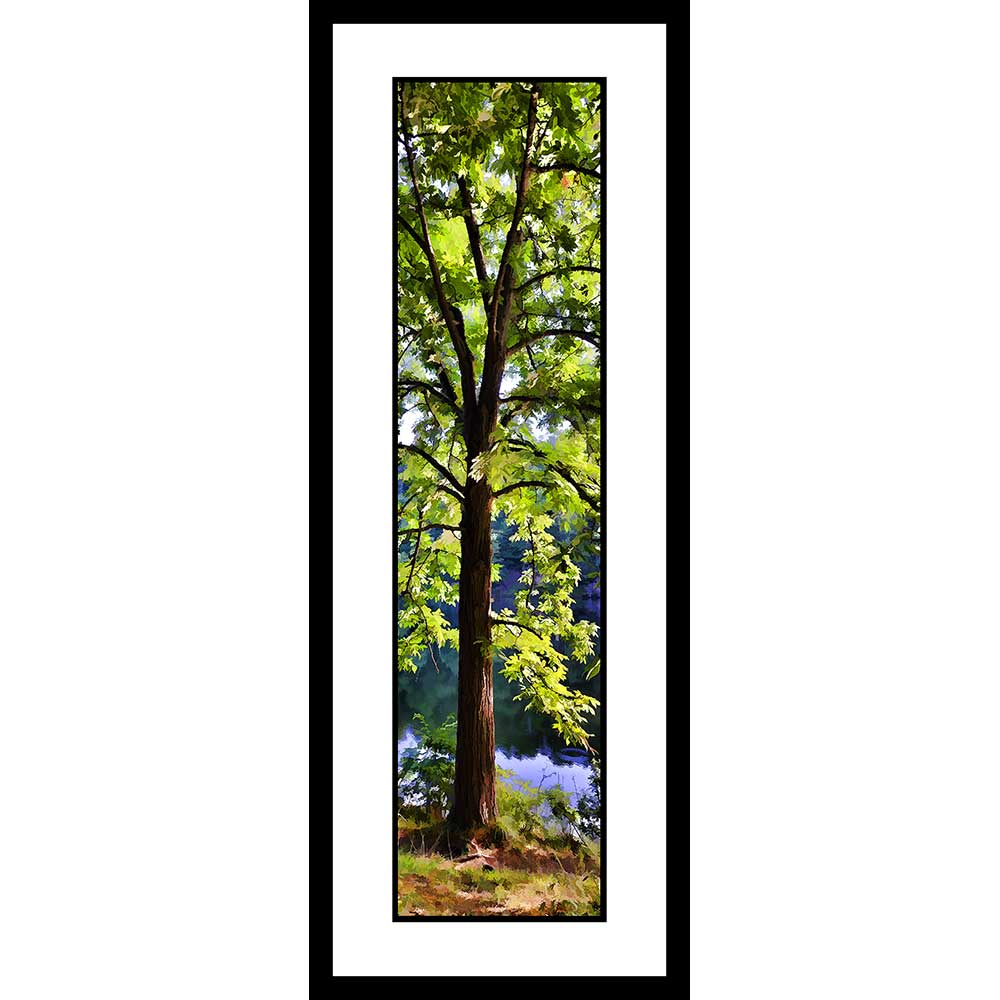 Framed pieces in both sizes are framed with UV resistant glass with double cotton rag mats white on black and an archival backing board in a classic black metal frame.