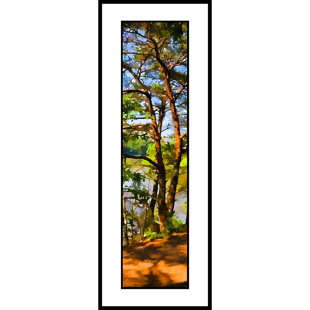 Framed pieces in both sizes are framed with UV resistant glass with double cotton rag mats white on black and an archival backing board in a classic black metal frame.