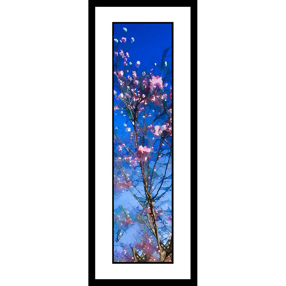 Framed pieces in both sizes are framed with UV resistant glass with double cotton rag mats white on black and an archival backing board in a classic black metal frame.